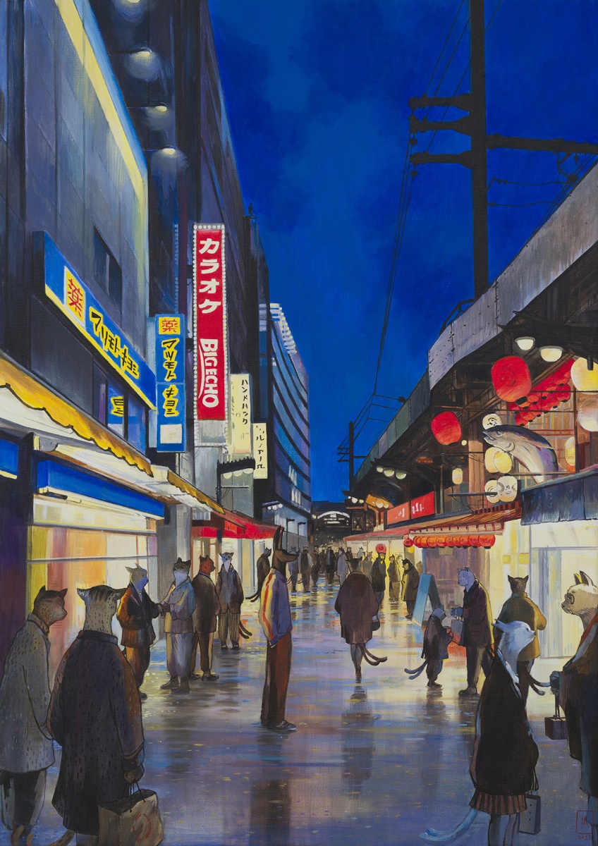 Wystawa, której otwarcie już w czwartek 9 października o godzinie 18.00, jest kontynuacją cyklu inspirowanego Japonią. Pierwsza odsłona, “Anubis i Yōkai” miała miejsce w 2022 roku. Były to w przeważającej części prace na papierze. Nowa ekspozycja cyklu to 16 prac na płótnach, malowanych techniką akrylową.