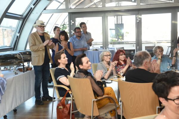 Do Sali Panoramicznej Międzynarodowego Centrum Kultury zaprosiłyśmy naszych przyjaciół by wznieść toast za pomyślność (Henkell Blanc de Blancs fundacji Agnieszki Czarneckiej), wysłuchać mistrzowskiej recytacji „Inge Bartsch” w wykonaniu Janka Güntnera, wytworne przekąski przygotowała niezawodna Basia Hobrzykowa a wykwintny jubileuszowy galerii tort zapewniła dawna sąsiadka (z czasów Starowiślnej) – cukiernia Cichowskich.