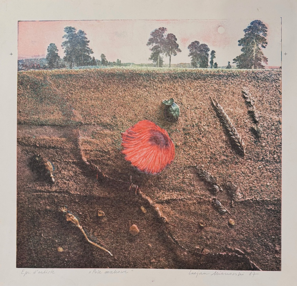 Powrót do: OfertaGrafikaMIANOWSKI LucjanPole makoweRok powstania: 1987Technika: offset, papierWymiary: 36,5x39 cmNr odbitki: odbitka autorskaZapytaj o tę grafikęcena:400zł+ Wybór
